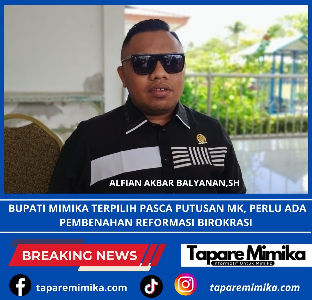 “Kalau kita dalam konteks Mimika itu masih belum terlalu relevan, kita punya komposisi SKPD dengan nomenklatur di kementerian. Makanya saya berharap di pelantikan di Bupati terpilih nanti pasca putusan MK nanti perlu ada pembenahan dan melakukan Reformasi birokrasi,”tegas Alfian.