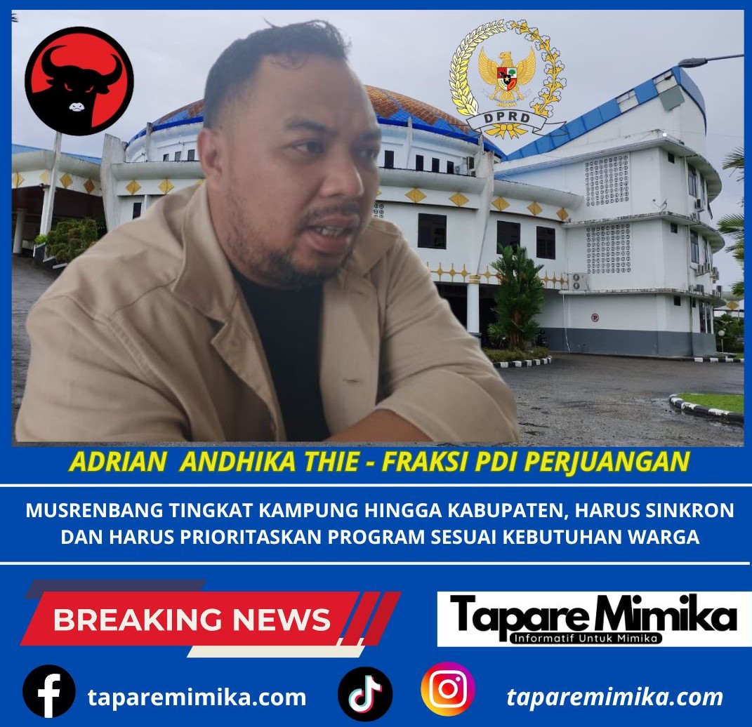 “Kita semua berharap bahwa bahwa prioritas utama dari pembangunan kedepan ini adalah hasil Musrenbang yang diusulkan dari jenjang Kampung, Kelurahan, Distrik hingga Musrenbang Kabupaten Mimika. Karena usulan melalui jenjang tingkatan ini dapat mengakomodir apa yang menjadi kebutuhan masyarakat ditingkat bahwa, bukan yang hanya dibutuhkan bagi usulan di tingkat kabupaten saja,”ungkap anggota DPRK Mimika dari Partai Demokrasi Indonesia Perjuangan, Adrian Andhika Thie kepada wartawan di kantor DPRK Mimika di Jalan Cendrawasih SP 2 Timika, Kabupaten Mimika, Papua Tengah, Rabu (19/8/2025).
