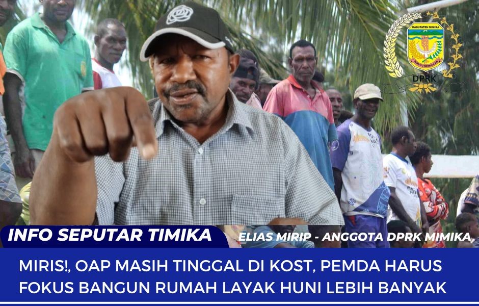 TIMIKA, (taparemimika.com) – Masih minimnya program pemerintah  kabupaten Mimika dalam pembangunan rumah layak huni bagi Orang Asli Papua (OAP) yang bersumber dari dana Otonomi Khusus (Otsus) dan dari Anggaran Pendapatan Dan Belanja Daerah (APBD), tidak seimbang dengan terus bertambahnya populasi dan bertambahnya Kepala Keluarga mendapat sorotan dari salah satu anggota Dewan Perwakilan Rakyat Kabupaten (DPRK) Mimika, Elias Mirip.