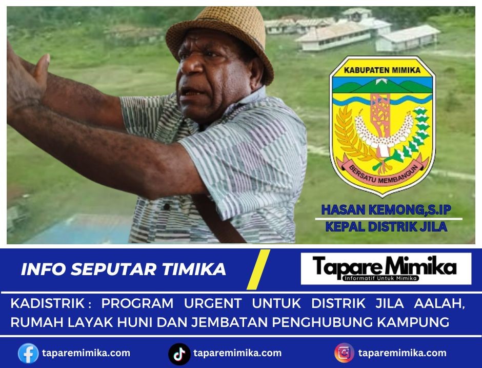 TIMIKA, (taparemimika.com) – Kepala Distrik Jila, Kabupaten Mimika, Hasan Kemong,S.IP menegaskan program yang sangat penting atau urgent di distrik Jila adalah Perumahan Layak Huni dan Jembatan Penghubung beberapa kampung saat ini. Karena itu, dua program ini menjadi program prioritas dalam Pembahasan Musyawarah Rencana Pembangunan (Musrenbang) tingkat Distrik.