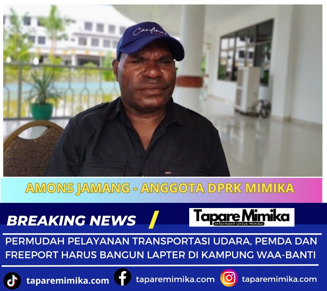 Hal tersebut ditegaskan anggota Dewan Perwakilan Rakyat Kabupaten ( DPRK) Mimika, Amons Jamang yang mendorong agar PT. Freeport Indonesia (PTFI) untuk membangun lapangan terbang di Kampung Waa Banti Distrik Tembagapura Mimika – Papua Tengah.