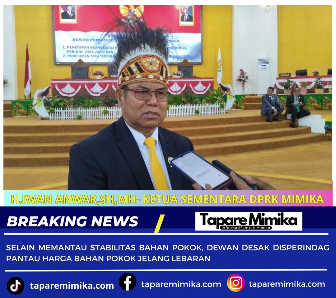 TIMIKA, (taparemimika.com) – Ketua Sementara Dewan Perwakilan Rakyat Kabupaten (DPRK) Mimika, H. Iwan Anwar, SH, MH berharap Dinas Perindustrian dan Perdagangan (Disperindag) Mimika terus memantu stabilitas ketersediaan bahan pokok serta menjaga stabilitas harga bahan pokok selama bulan suci Ramadhan hingga hari raya lebaran Idulfirtri 1446H mendatang.