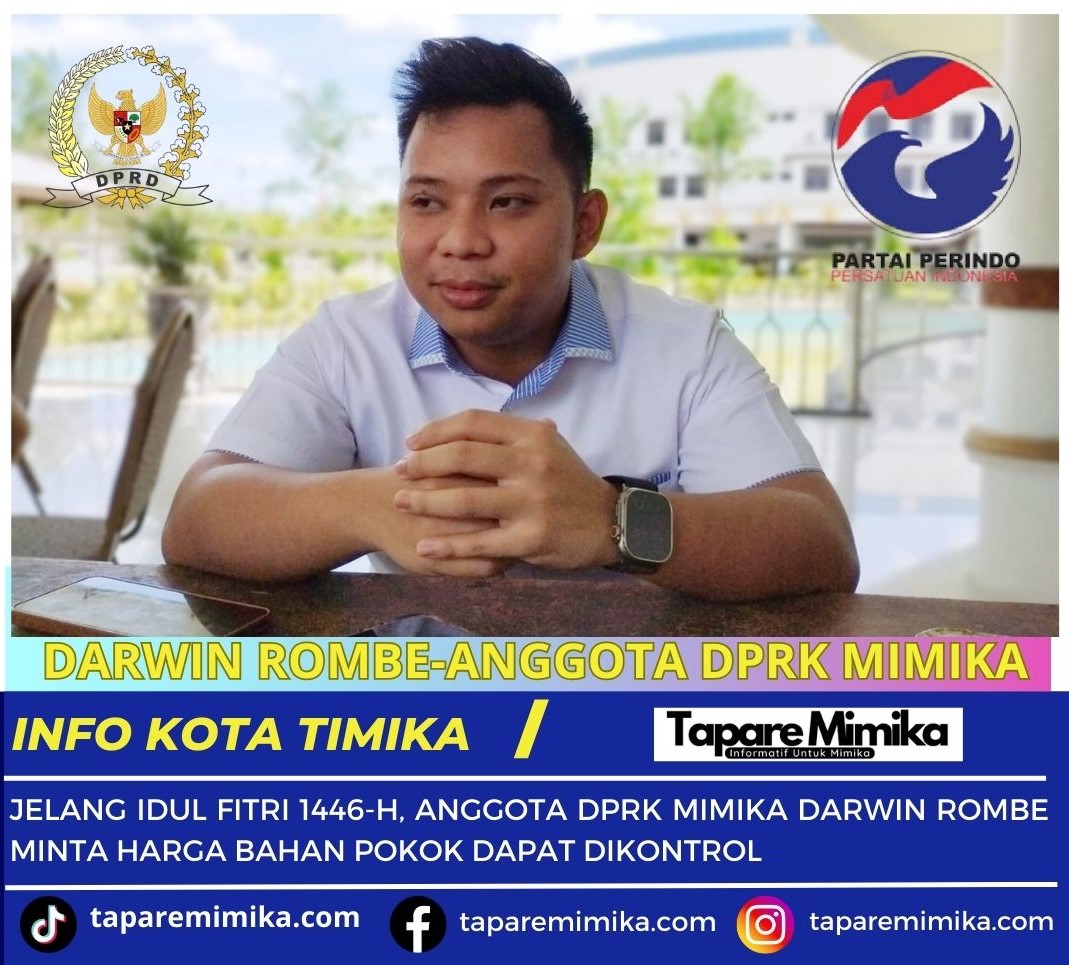 TAPAREMIMIK.COM – Menjelang perayaan Hari Raya Idul Fitri 1446-H atau bertepatan 31 Maret 2025 mendatang, anggota DPR Kabupaten Mimika,Darwin Rombe, menegaskan pentingnya pengawasan ketat terhadap harga bahan pokok dapat dikontrol sehingga tidak terkesan memberatkan bagi kaum muslimin yang ada di Timika, Kabupaten Mimika.