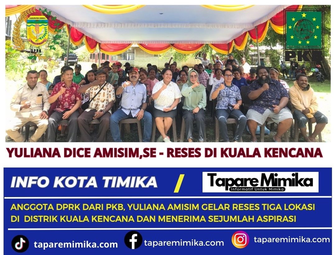 TIMIKA, (taparemimika.com) – Anggota Dewan Perwakilan Rakyat Kabupaten (DPRK) Mimika dari Partai Kebangkitan Bangsa (PKB) Daerah Pemilihan 5, Yuliana Dice Amisim,SE menggelar kegiatan Reses Tahap Pertama Tahun 2025 di tiga lokasi yang berbeda di distrik Kuala Kencana, kabupaten Mimika, sejak 20 Maret hingga 22 Maret 2025.