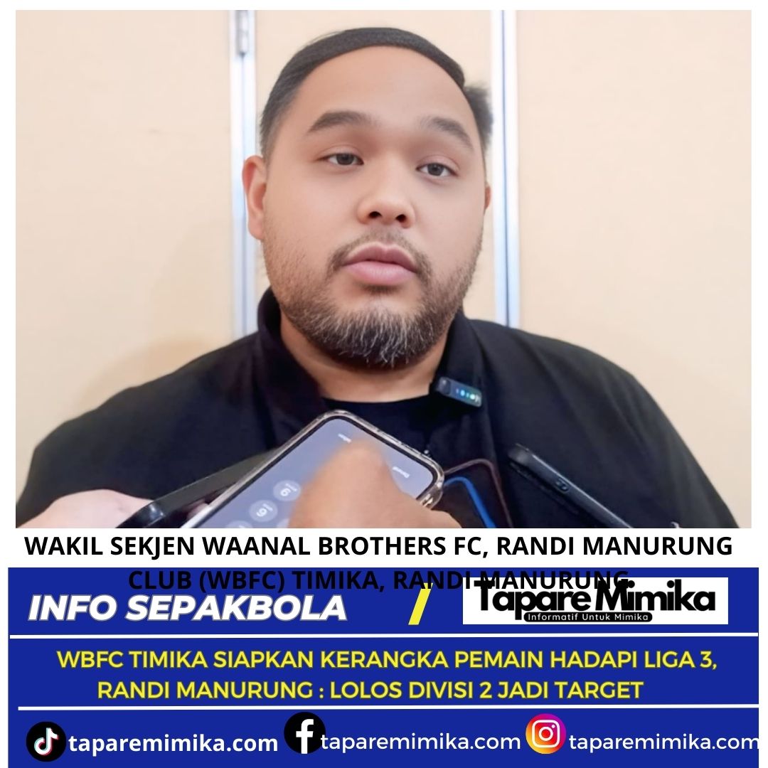 TIMIKA, (taparemimika.com) – Wakil Sekjen Waanal Brothers Football Club (WBFC) Timika, Randi Manurung mengatakan, saat ini pihaknya sementara mempersiapkan kerangka pemain untuk menghadapi Liga 3 Nasional. Untuk putaran kompetisi tahun 2025 menargetkan dapat lolos ke liga 2.