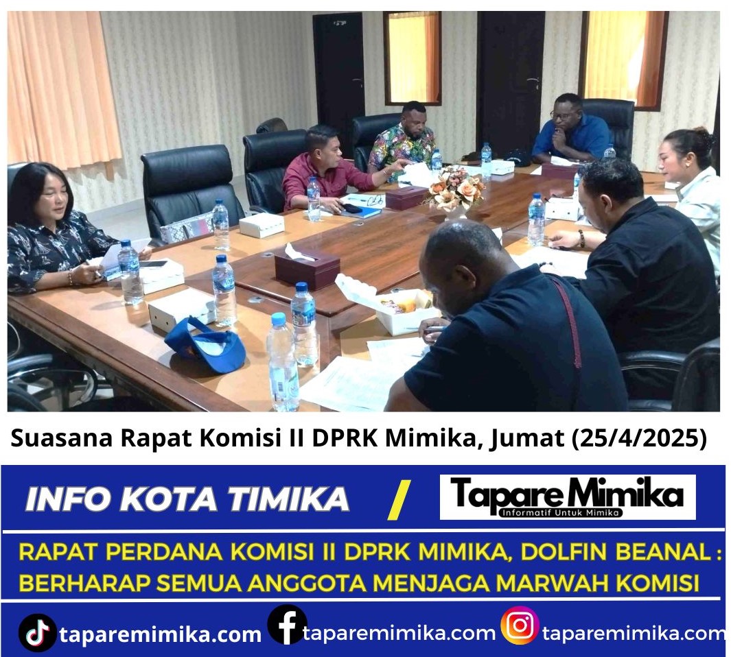 TIMIKA, (taparemimika.com) – Setelah resmi disahkan Alat Kelengkapan Dewan (AKD) melalui Rapat Paripurna pada Rabu (23/4/2025) lalu, Komisi B Dewan Perwakilan Rakyat Kabupaten (DPRK) Mimika langsung tancap gas dengan menggelar Rapat Perdana komisi yang dipimpin langsung oleh Ketua Komisi B, Dolfin Beanal pada Jumat (25/4/2025).
