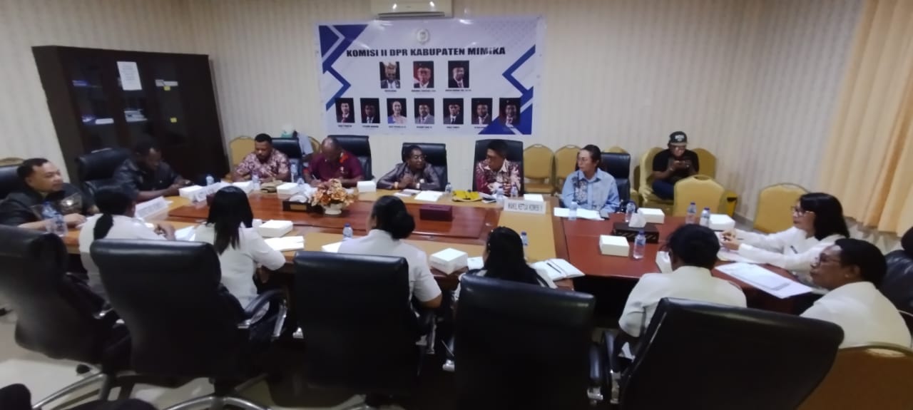 TIMIKA, (taparemimika.com) – Komisi II Dewan Perwakilan Rakyat Kabupaten (DPRK) Mimika melakukan Rapat terbuka dalam rangka Hearing dengan Dinas Peternakan dan Kesehatan Hewan (Disnakeswan), kabupaten Mimika pada Rabu (4/5/2025). Rapat Hearing yang berlangsung di ruang Rapat Komisi II DPRK Mimika lantai 2 tersebut dipimpin langsung oleh Sekretaris Komisi II, Adrian Andhika Thie,S.Par, dan dihadiri juga oleh Ketua Komisi II, Dolfin Beanal didampingi Wakil Ketua Komisi Mariunus Tandiseno, dan anggota diantaranya, Billianus Zoani, Adolina Magal, Luther Beanal dan Dessy Putrika Ros Rante,SE.