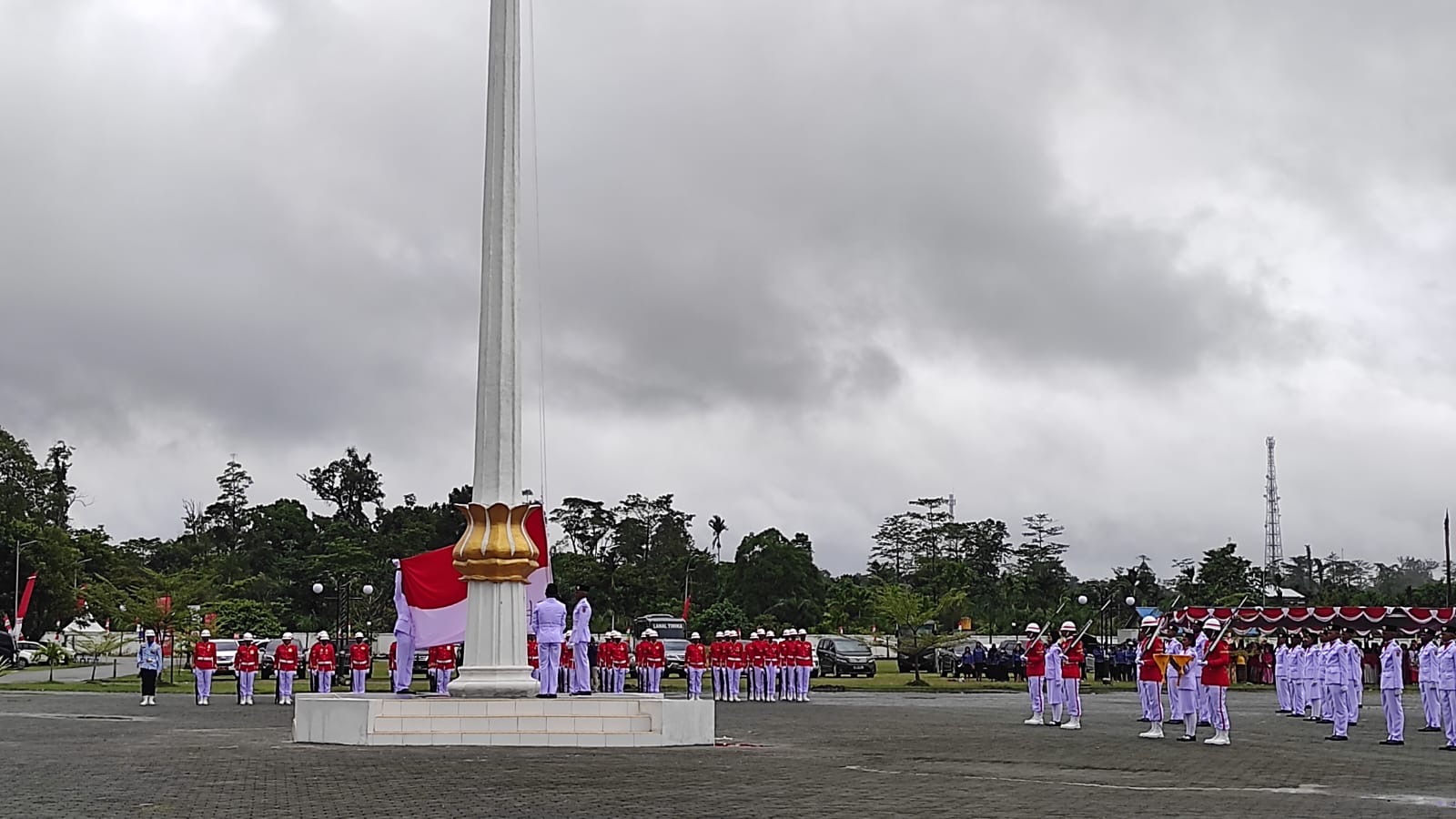 Suasana Upacara dalam rangka memperingati detik-detik proklamasi kemerdekaan RI ke 80 di Lapangan Kantor Pusat Pemerintahan Kabupaten Mimika, berlangsung khidmat, Minggu (17/8/2025), Foto : Redaksi