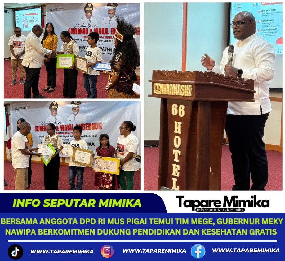 Dalam sambutannya, Gubernur Papua Tengah Meky Fritz Nawipa menegaskan Komitmennya untuk menjalankan program prioritas, khususnya pendidikan dan kesehatan gratis bagi seluruh masyarakat di Provinsi Papua Tengah.