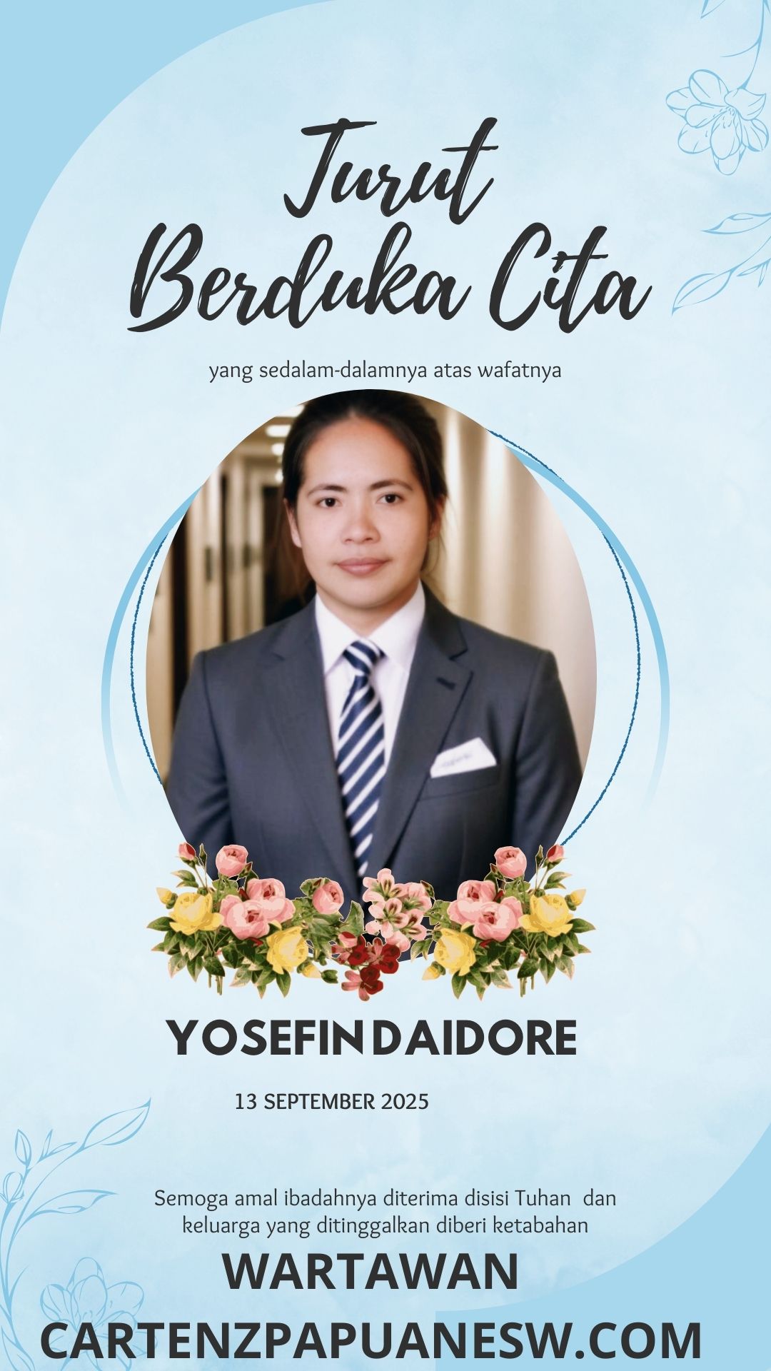 TIMIKA, (taparemimika.com) – Dunia pers di Papua Tengah tengah berduka. Sekretaris Jaringan Media Siber Indonesia (JMSI) Papua Tengah, Yosefina Daidore, berpulang pada Sabtu (13/9/2025) dia Rumah Sakit Mitra Masyarakat (RSMM) Timika, kabupaten Mimika, Papua Tengah.