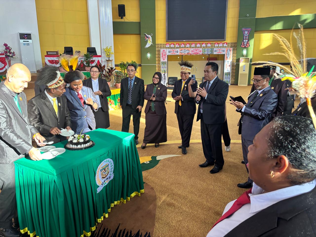 Perayaan Ulang Tahun anggota DPRK Mimika Periode 2024-2029 ditandai dengan pemotongan kue ulang tahun ukuran mini dan meniup lilin oleh Ketua DPRK Mimika Primus Natikapereyau didampingi Wakil Ketua I Asri Akkas dan Wakil Ketua III Ester Tsenawatme.