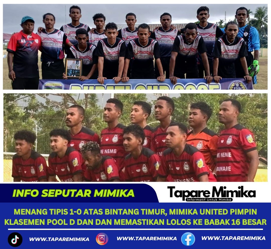 MENANG TIPIS 1-0 ATAS BINTANG TIMUR, MIMIKA UNITED PIMPIN KLASEMEN POOL D dan DAN MEMASTIKAN LOLOS KE BABAK 16 BESAR