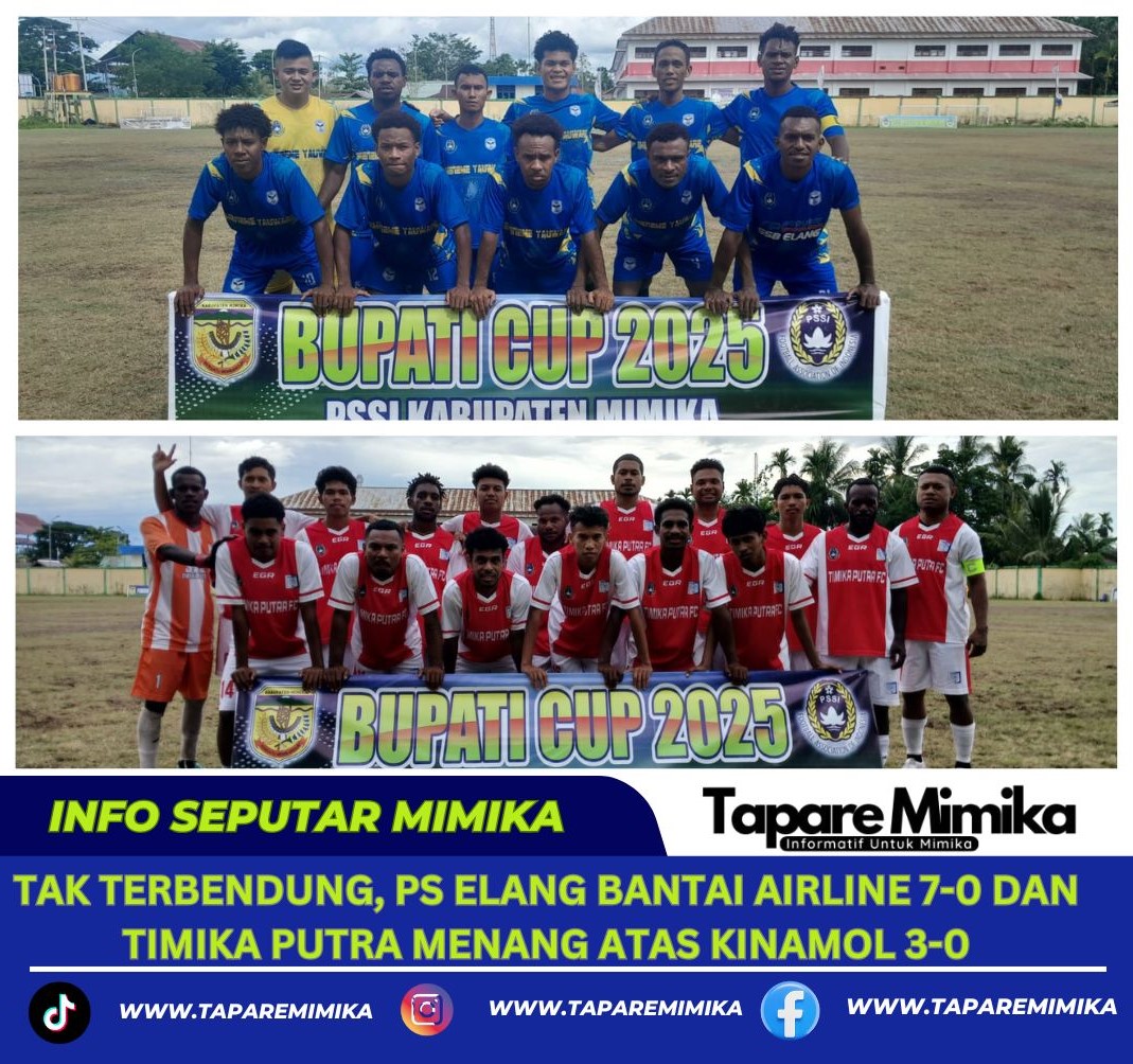 TIMIKA, (taparemimika.com ) – Semakin perkasa dan tak terbendung kesebelasan Sepakbola Elang berhasil membantai kesebelasan Airline dengan skor telak 7-0 tanpa balas. Dengan Hasil kemenangan ini Elang memastikan satu tiket ke babak Perempat Final Turnamen Sepakbola Piala Bupati Mimik U-22 Askab PSSI Mimika Tahun 2025.