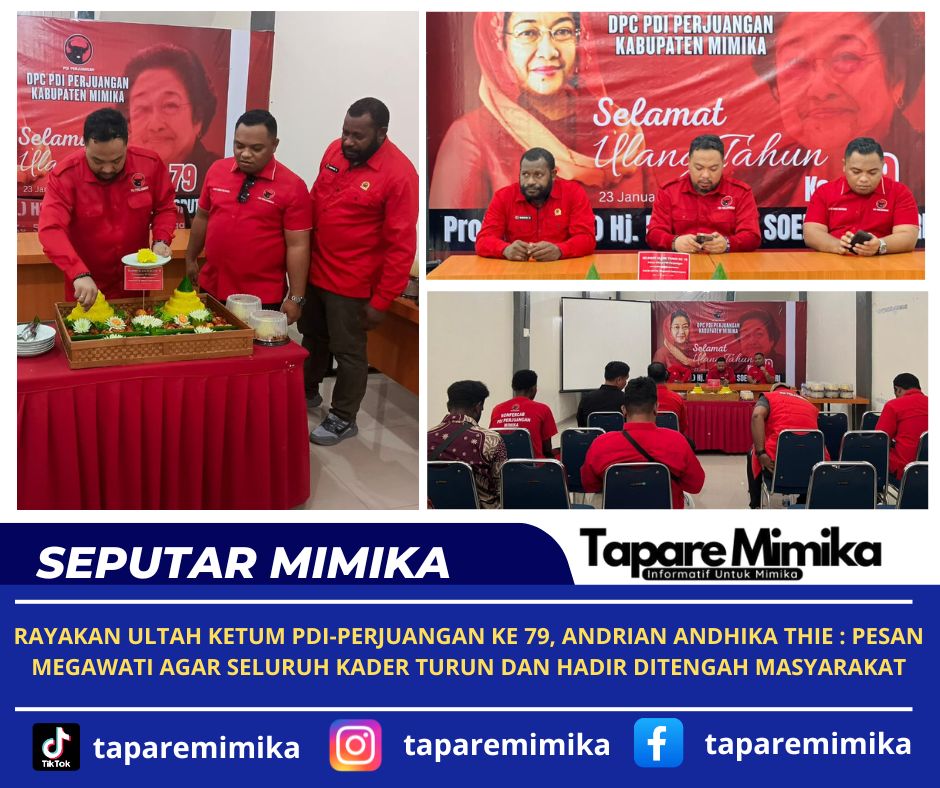 TIMIKA(, (taparemimika.com) – Dewan Pimpinan Cabang (DPC) Partai Demokrasi Indonesia Perjuangan Kabupaten Mimika, Papua Tengah, menggelar peringatan Hari Ulang Tahun ke-79 Ketua Umum Megawati Soekarno Putri, pada Jumat (23/1/2026).