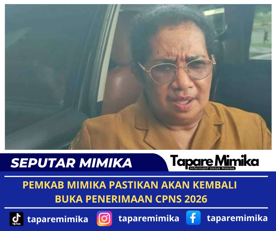 TIMIKA, (taparemimika.com) – Pemerintah Kabupaten (Pemkab) Mimika memastikan akan kembali membuka seleksi Calon Pegawai Negeri Sipil (CPNS) tahun 2026. Kepastian ini menjadi kabar baik bagi masyarakat Mimika yang menantikan peluang untuk bergabung sebagai Aparatur Sipil Negara (ASN).