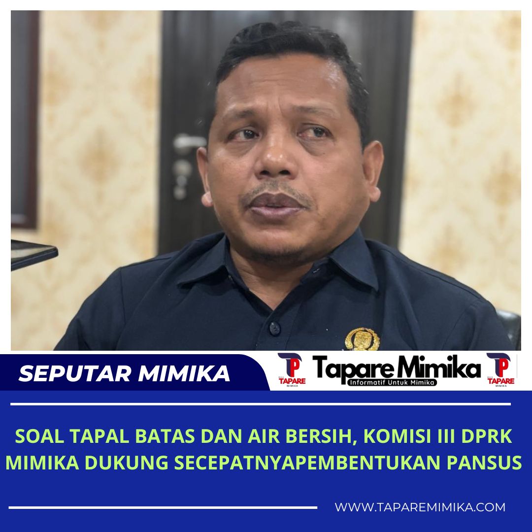 TIMIKA, (taparemimika.com) – Menyikapi penyelesaian tapal batas antara Kabupaten Mimika dan kabupaten tetangga yang belum juga ada penyelesaian ditambah persoalan air bersih, Komisi III DPRK Mimika mendukung pembentuka Panitia Khusus (Pansus).