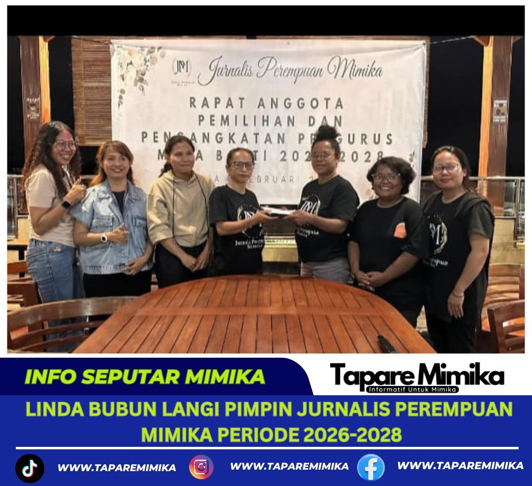 TIMIKA, (taparemimika.com) – Organisasi Jurnalis Perempuan Mimika (JPM) secara resmi menetapkan kepengurusan baru untuk masa bakti 2026-2028 dalam rapat anggota pemilihan dan pengangkatan pengurus yang digelar di Timika, Sabtu (7/2/2026).