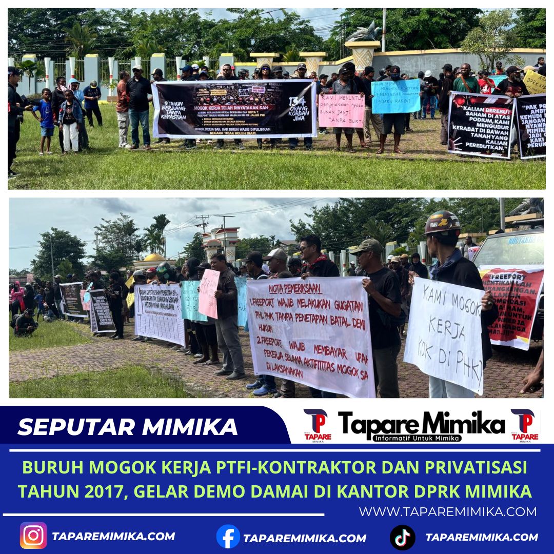 BURUH MOGOK KERJA PTFI-KONTRAKTOR DAN PRIVATISASI TAHUN 2017, GELAR DEMO DAMAI DI KANTOR DPRK MIMIKA