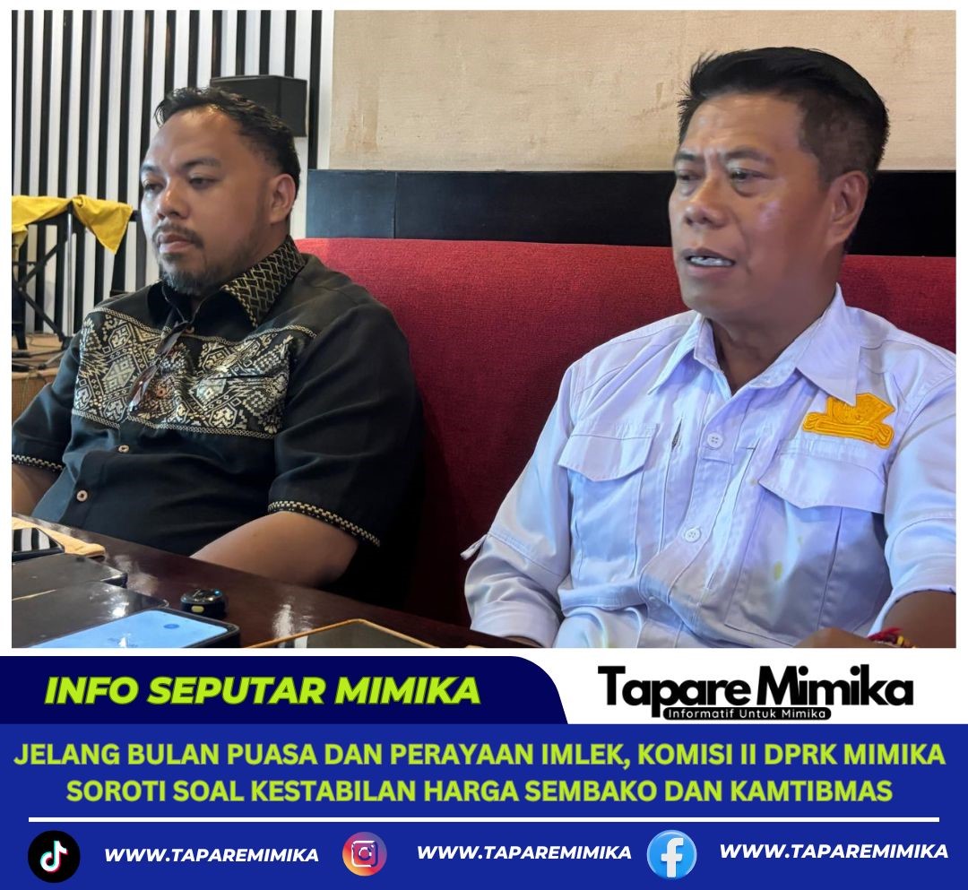 TIMIKA, (taparemimika.com) – Menjelang perayaan Imlek 17 Februari dan Bulan memasuki Bulan Suci Ramadhan 19 Februari 1447 hijriyah, Komisi II Dewan Perwakilan Rakyat Kabupaten (DPRK) Mimika menyoroti tentang antisipasi kestabilan harga bahan pokok dan Keamanan dan Ketertiban Masyarakat (Kamtibmas) di kabupaten Mimika.