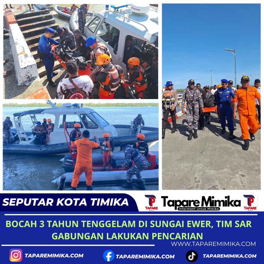 ASMAT, (taparemimika.com) – Yohanes, bocah berusia 3 tahun pada Rabu (18/2/2026) dilaporkan tenggelam di Sungai Ewer Kabupaten Asmat, Provinsi Papua Selatan.Kabar tenggelamnnya Yonaness dilaporkan tenggelam oleh Syarif salah satu Tagana ke petugas jaga Pos Pencarian dan Pertolongan Asmat.