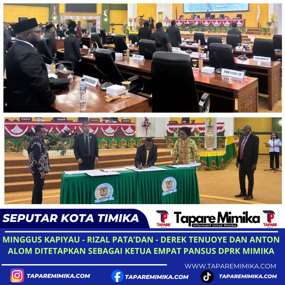 TIMIKA, (taparemimika.com) – Empat Ketua Panitia Khusus (Pansus) Dewan Perwakilan Rakyat Kabupaten (DPRK) Mimika Provinsi Papua Tengah akhirnya ditetapkan dalam Rapat Paripurna DPRK Mimika, yang digelar di ruang sidang kantor DPRK Mimika di Jalan Cendrawasih Timika, Kabupaten Mimika Papua Tengah pada, Rabu (25/2/2026).