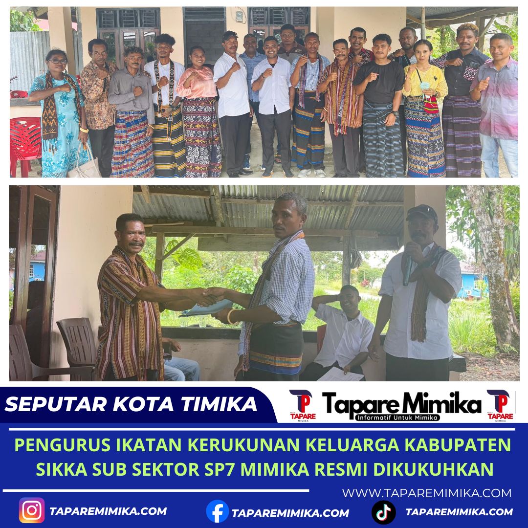 TIMIKA, (taparemimikka.com) – Ikatan Kerukunan Keluarga Kabupaten Sikka (IK3S) Kabupaten Mimika, Provinsi Papua Tengah kini semakin memperluas jangkauan organisasinya. Pada Minggu (15/3/2026), Ketua IK3S Kabupaten Mimika, Kamilus Lesu, secara resmi mengukuhkan pengurus IK3S Sub Sektor SP7 di Kampung Mulia Kencana.