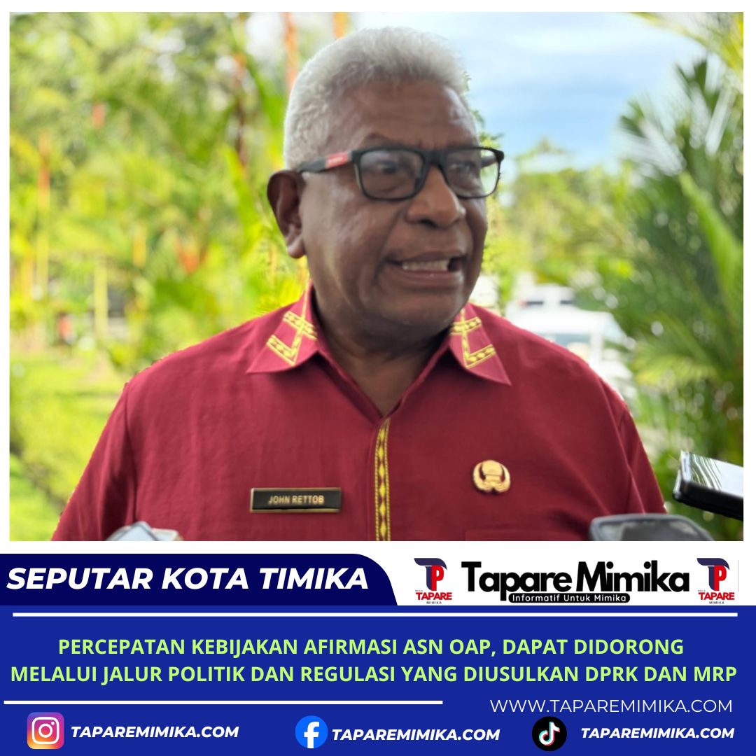 TIMIKA, (taparemimika.com) – Bupati kabupaten Mimika, Johannes Rettob,S.Sos,MM tegaskan untuk percepatan kebijakan afirmasi bagi ASN Amungme dan Kamoro serta Orang Asli Papua (OAP), dapat didorong melalui jalur politik dan regulasi yang diusulkan oleh Dewan Perwakilan Kabupaten (DPRK) dan Majelis Rakyat Papua (MRP).