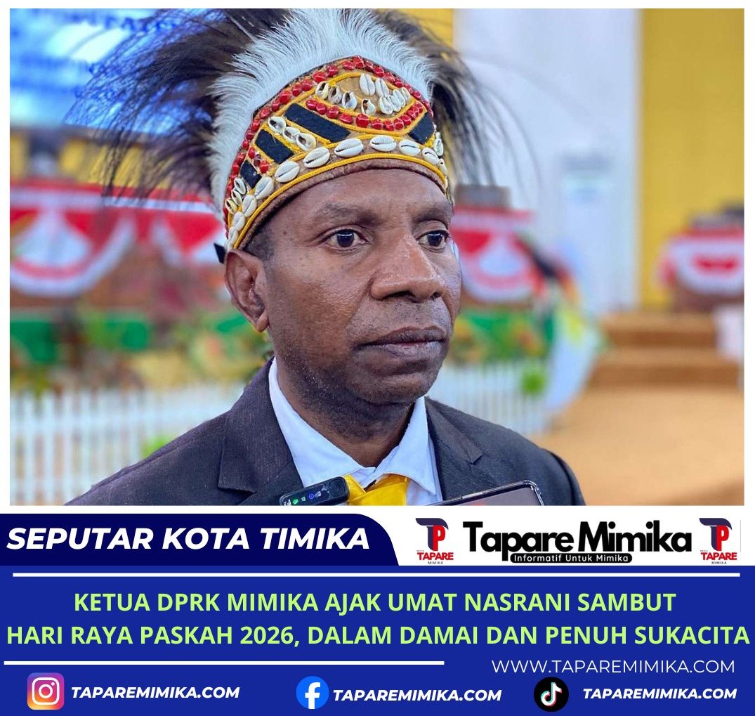 TIMIKA,(taparemimika.com) – Ketua Dewan Perwakilan Rakyat Kabupaten (DPRK) Mimika, Provinsi Papua Tengah Primus Natikapereyau, mengajak seluruh umat Kristiani (Nasrani) di Timika untuk menyambut Hari Raya Paskah 2026 dengan damai dan penuh sukacita.