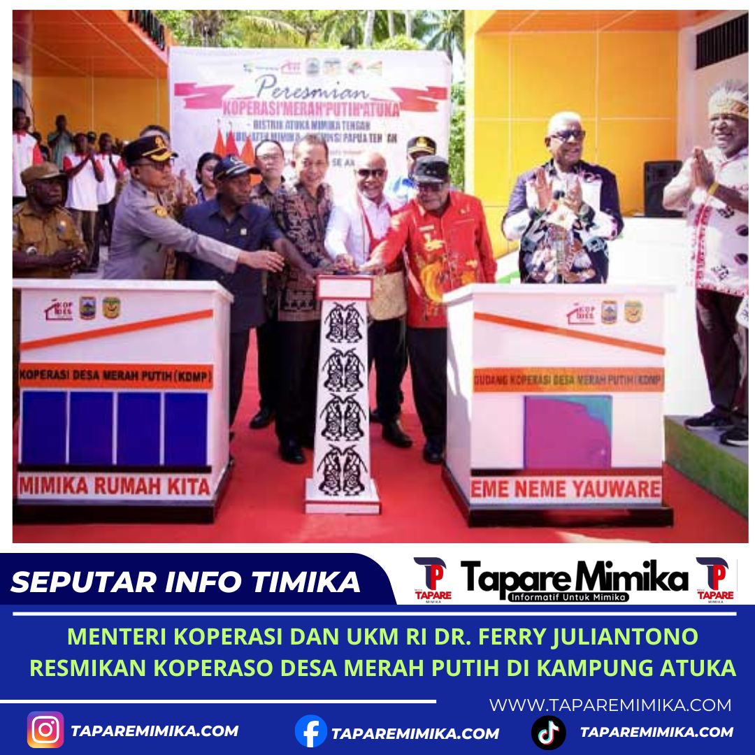 TIMIKA, (taparemimika.com) – Menteri Koperasi dan UKM RI Dr. Ferry Juliantono meresmikan Koperasi Desa (Kopdes) Merah Putih di Kampung Atuka, Distrik Mimika Tengah, Kabupaten Mimika, Papua Tengah, Kamis (9/4/2026).