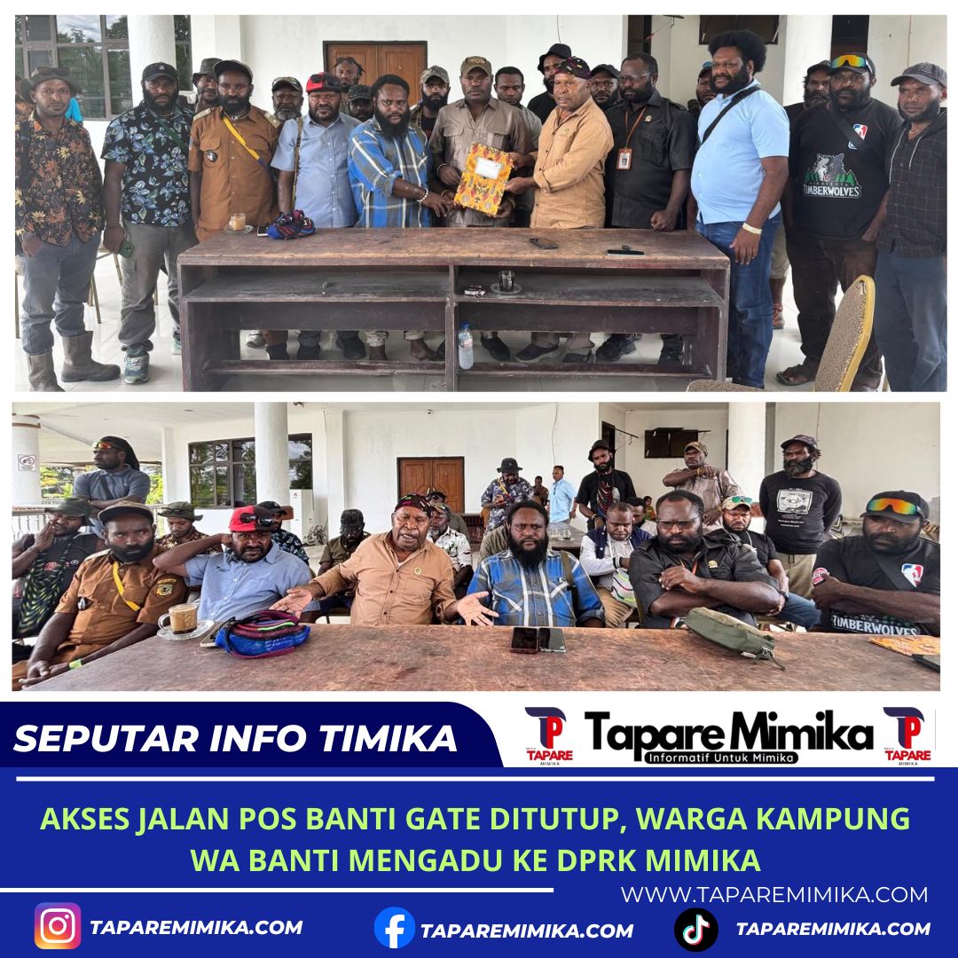 TIMIKA,(taparemimika.com) – Terkait penutupan akses jalan dari Pos Banti Gate menuju Waa Banti yang selama ini menjadi jalur utama aktivitas masyarakat dari empat Kampung Waa Banti I, Banti II dan Opitawak Distrik Tembagapura, Kabupaten Mimika, Provinsi Papua Tengah, sejumlah warga mengadu ke Dewan Perwakilan Kabupaten (DPRK) Mimika, Provinsi Papua Tengah.
