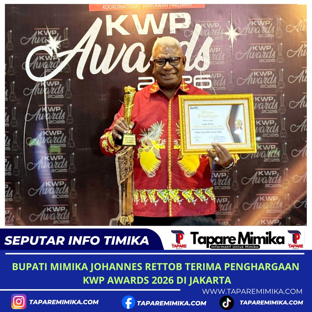 TIMIKA, (taparemimika.com) – Bupati Mimika, Johannes Rettob, menerima penghargaan dalam ajang KWP Awards 2026 yang diselenggarakan Koordinatoriot Wartawan Parlemen (KWP), berlangsung di Gedung Nusantara IV, Kompleks Parlemen, Jakarta, Kamis (16/4/2026).