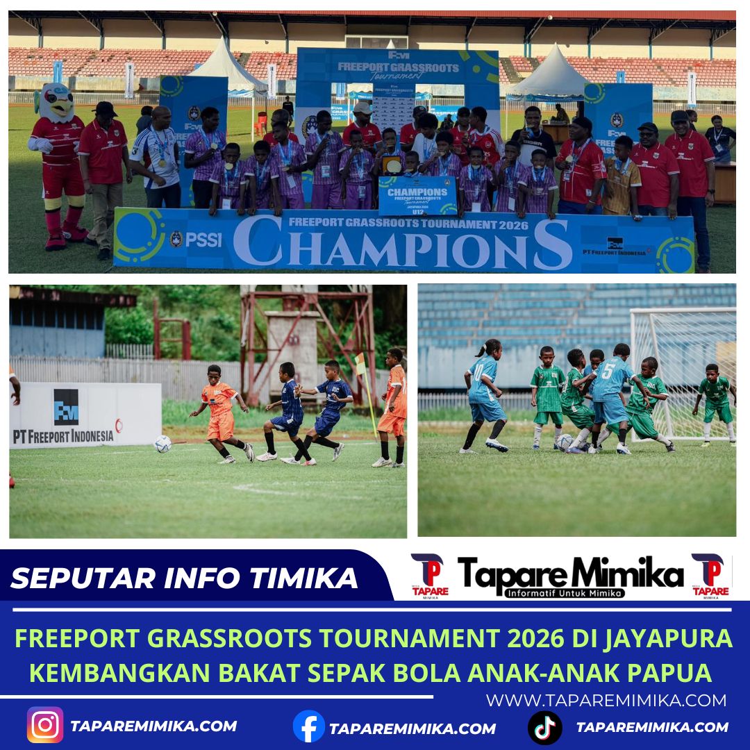JAYAPURA, (taparemimika.com) – Persatuan Sepak Bola Seluruh Indonesia (PSSI) bersama PT Freeport Indonesia (PTFI) terus mengembangkan bakat sepak bola usia dini di Papua melalui Freeport Grassroots Tournament (FGT) 2026 yang berlangsung di Stadion Mandala, Jayapura, Papua, 17-18 April 2026.