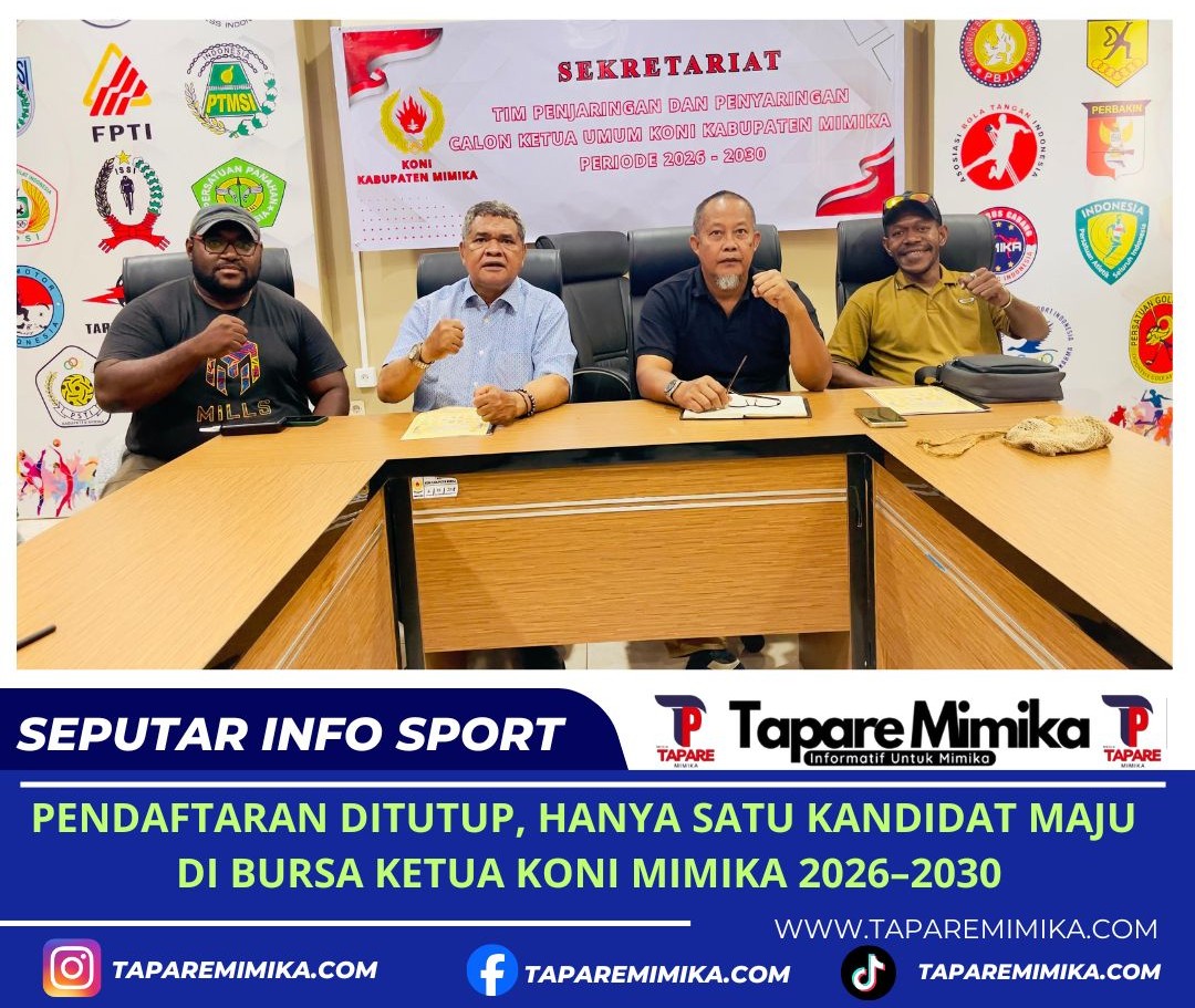 Dengan hanya satu kandidat yang maju, dinamika pemilihan Ketua KONI Mimika periode 2026–2030 dipastikan akan mengarah pada mekanisme aklamasi, seluruh seluruh persyaratan dapat dipenuhi oleh calon.