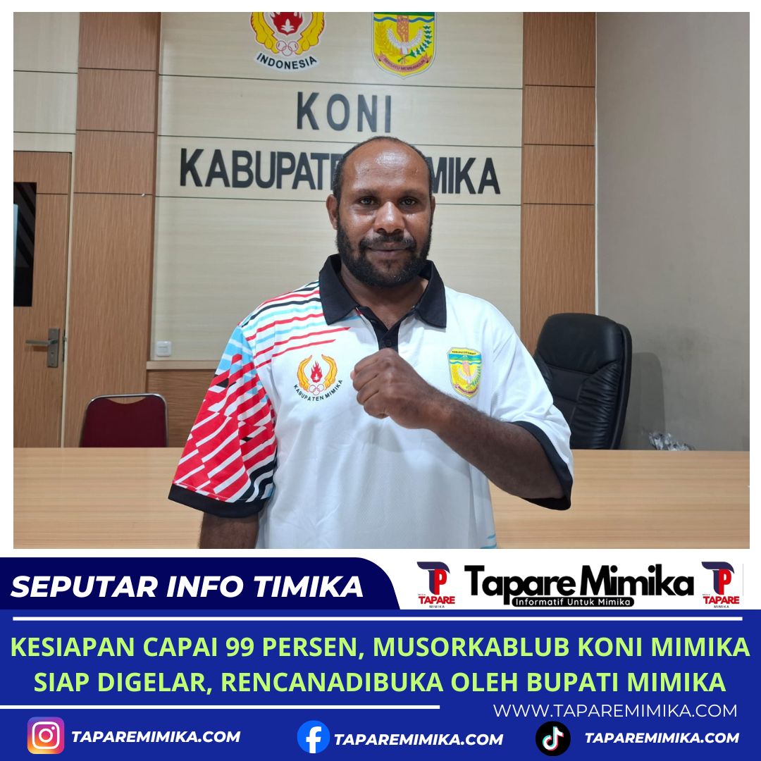 “Iya, untuk persiapan Musorkablub KONI Mimika sejauh ini sudah mencapai 99 persen dan kami siap melaksanakannya pada 1 Mei 2026. Teman-teman panitia juga sudah mengambil langkah-langkah dan menyiapkan seluruh kebutuhan,” ujarnya.