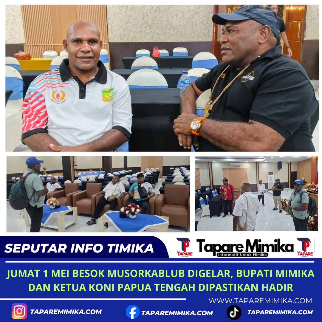 JUMAT 1 MEI BESOK MUSORKABLUB DIGELAR, BUPATI MIMIKA DAN KETUA KONI PAPUA TENGAH DIPASTIKAN HADIR